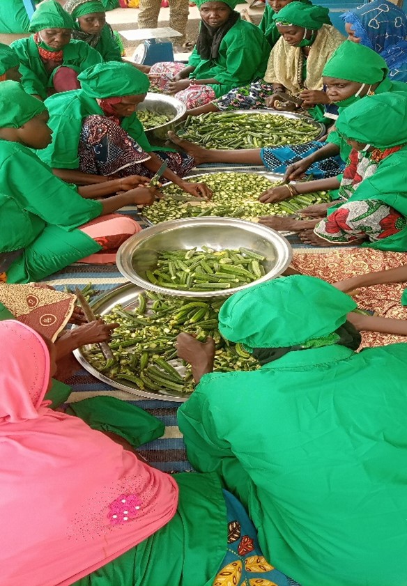 Les membres d’AGROTECH produisent une large gamme de légumes et de fruits, tels que des oignons, fleurs d’hibiscus, tomates, gombos, oranges, gingembre et des céréales telles que le riz. Les membres transforment également une variété de leur production pour réduire les pertes post-récolte. Les produits à valeur ajoutée comprennent des tomates, des oignons, de l’ail et du gombo séchés, ainsi que du vin hibiscus.