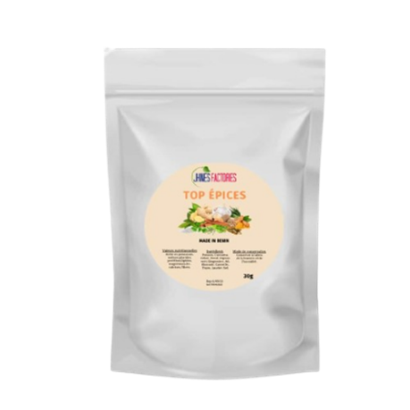 The TOP EPICES range completes the range of condiments with ginger and chilli powders, as well as a blend of spices. These powders are packaged in flexible re-sealable aluminium sachets.